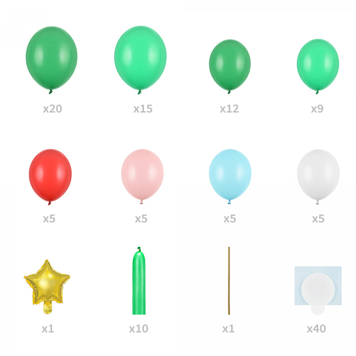 Ein wunderschöner Weihnachtsbaum aus Luftballons. Eine großartige Farbkombination, das Set enthält: