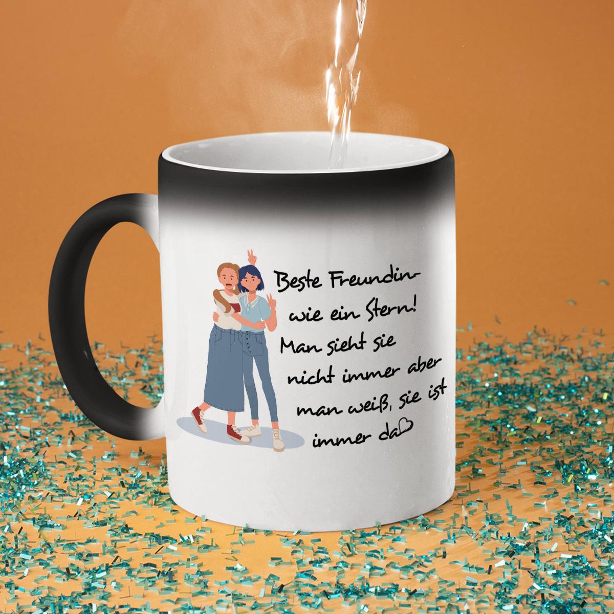 - Cana magică - nu degeaba se numește magică! La prima vedere, este o simplă cană neagră, dar atunci când se toarnă apă fierbinte în ea, aceasta devine albă, iar inscripția ascunsă este dezvăluită. Este o adevărată surpriză și un mic miracol pentru fiecare zi!