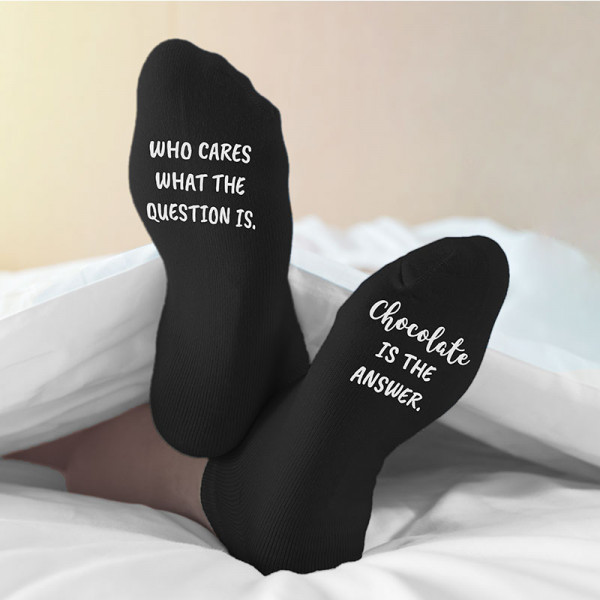 Damensocken mit Sohlenprint „Chocolate is the answer“