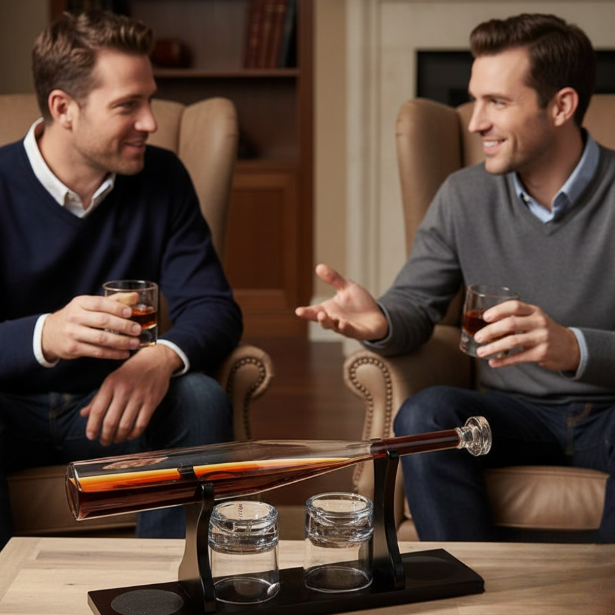 Gewehrförmige Karaffe mit Ständer und 4 Gläser Set "Baseball bat"