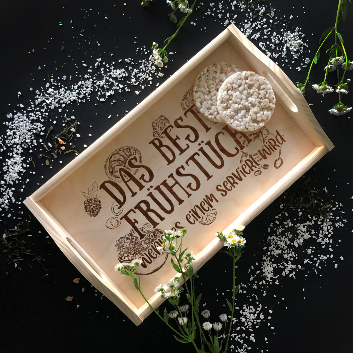 Frühstückstablett aus Holz "Bestes Frühstück"