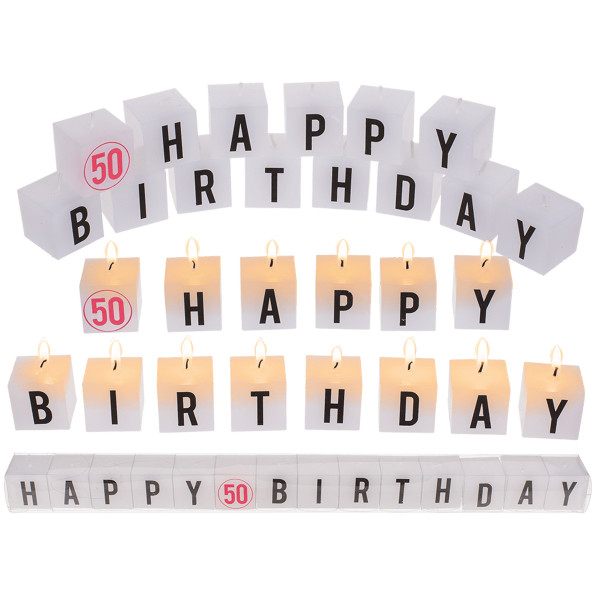 Kuchenkerzen-Set - Buchstaben mit der Zahl „50“.