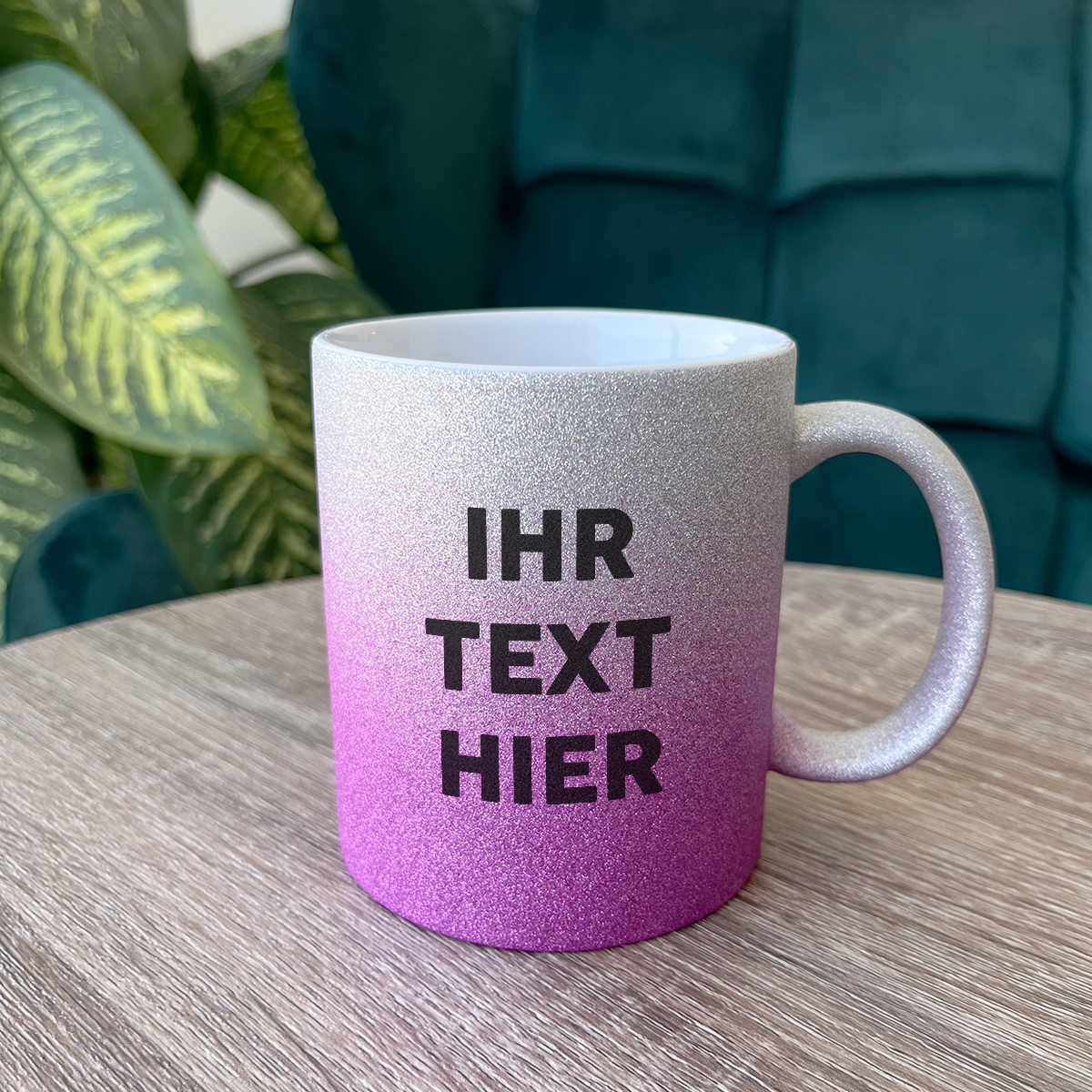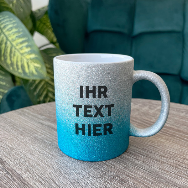 Glänzende Tasse mit Ihrem Wunschtext