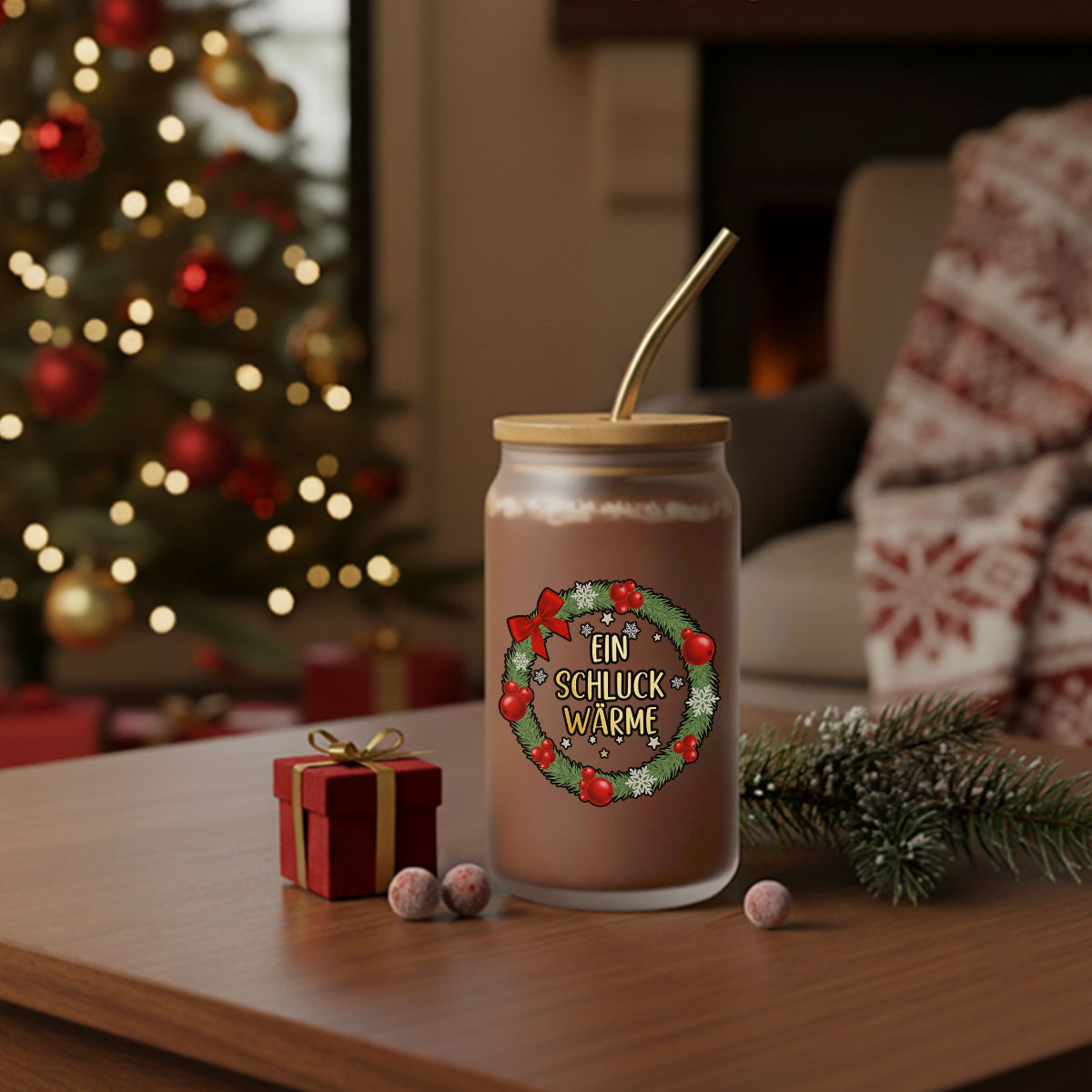 Glas-Trinkgefäß mit Metallstrohhalm "Ein Schluck Wärme" - eine gemütliche Wahl für Feste und den Alltag!