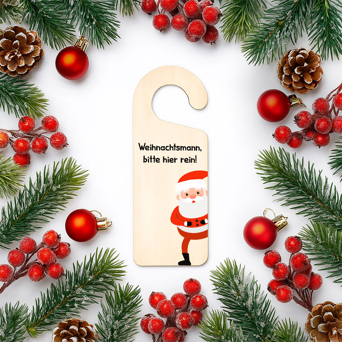 Hängendes Tür-Holzschild "Weihnachtsmann, bitte hier rein"