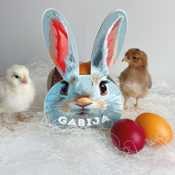 Holzkorb "Hase" mit Ihrem Wunschnamen