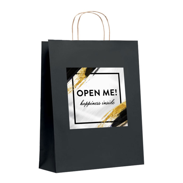 Papier-Geschenktüte „Open Me“ - ideal zum Verpacken von Geschenken, die immer schön und stilvoll aussehen. Diese Tüten werden mit einem Aufkleber geliefert - „Open Me“, Maße - 10x10 cm.