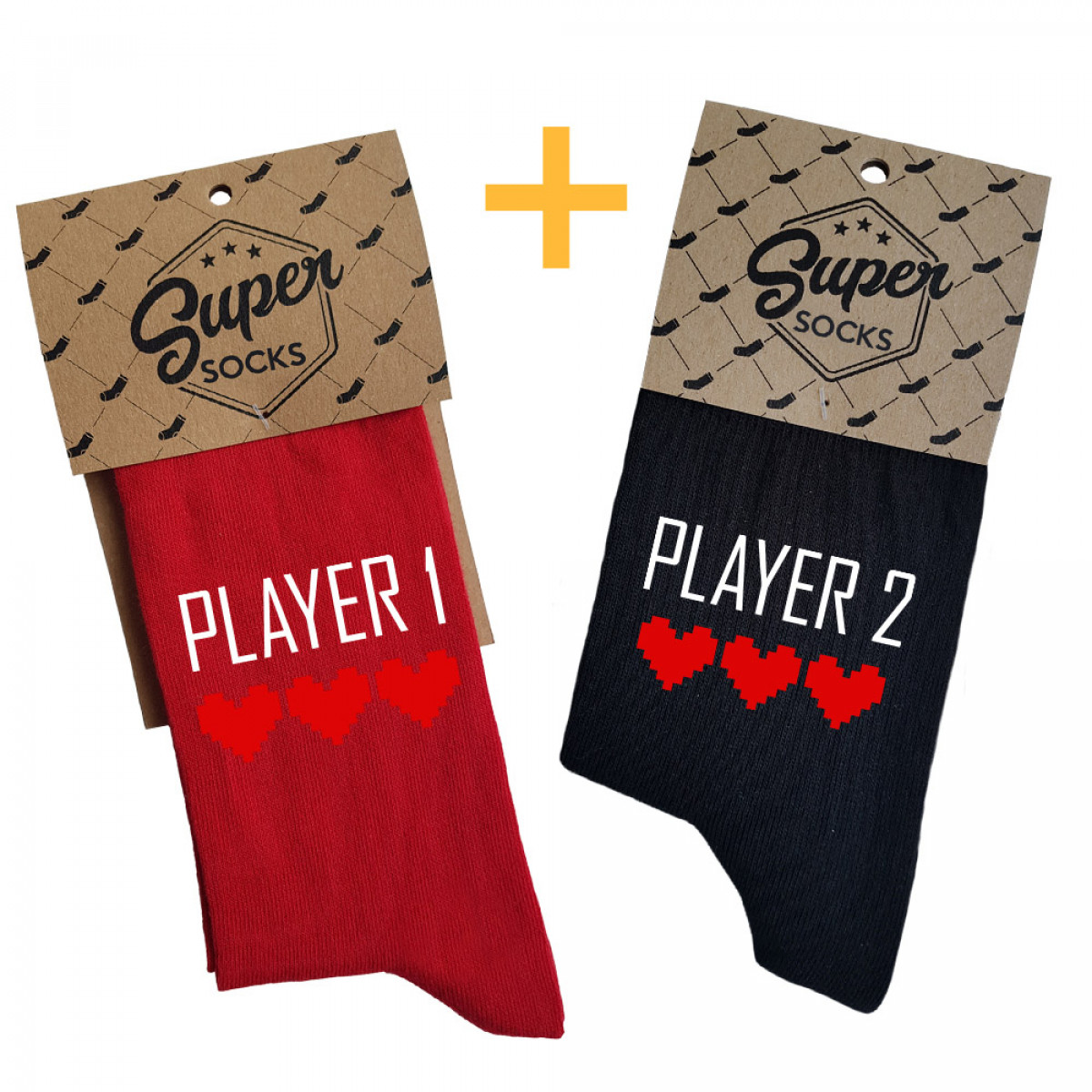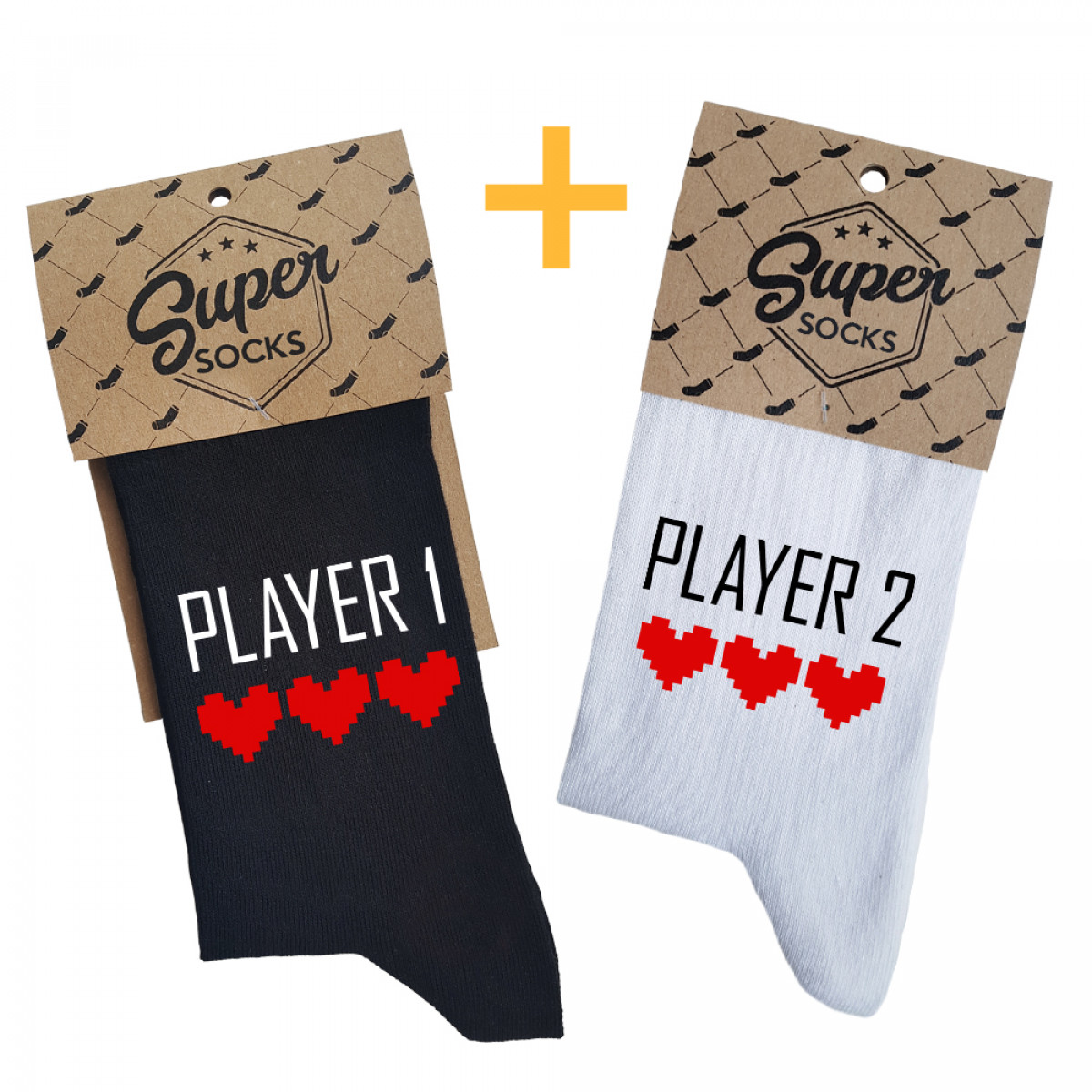 - Zwei Paar Socken mit Aufdrucken auf beiden Socken.