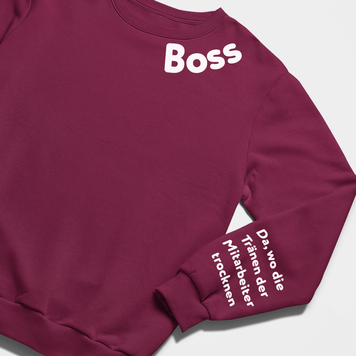 Sweatshirt "Boss - für Mitarbeitertränen" (ohne Kapuze) mit Aufdruck auf dem Ärmel