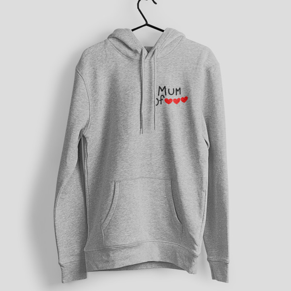 Sweatshirt "Mum" mit der ausgewählten Anzahl von Herzen