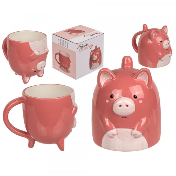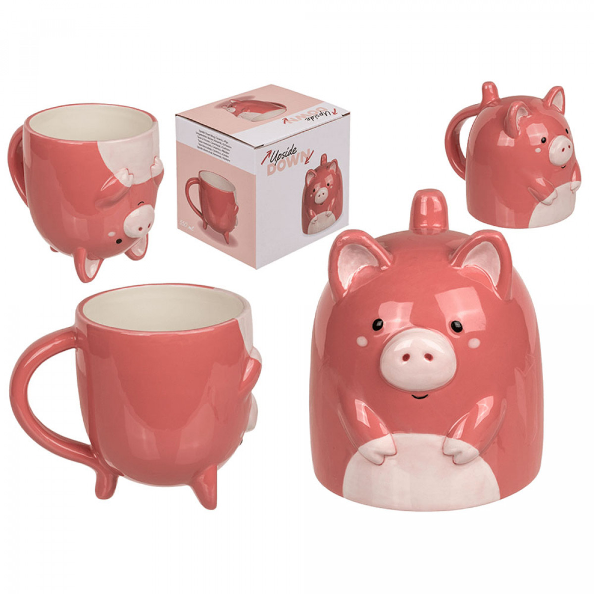 Ein Becher, der, wenn er auf den Kopf gestellt wird, ein niedliches Schweinchen zum Vorschein bringt. Ein außergewöhnlich schönes und originelles Küchenaccessoire.