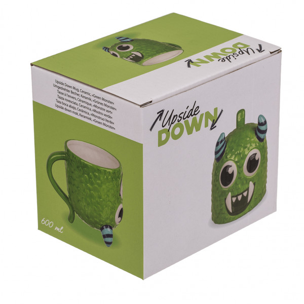 Ein Becher, der, wenn er auf den Kopf gestellt wird, ein niedliches Monster enthüllt. Ein außergewöhnlich schönes und originelles Küchenaccessoire.