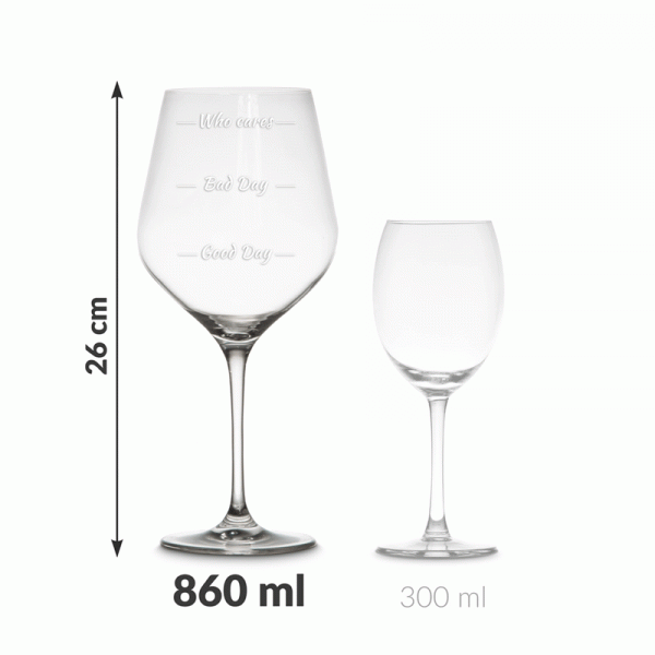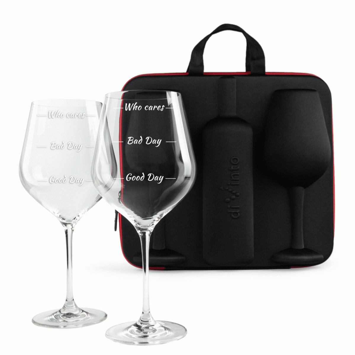 Weinglas-Set mit zwei gigantischen Weingläsern (860 ml) in einer eleganten, schwarzen Tasche mit Platz für Ihre Lieblingsweinflasche.