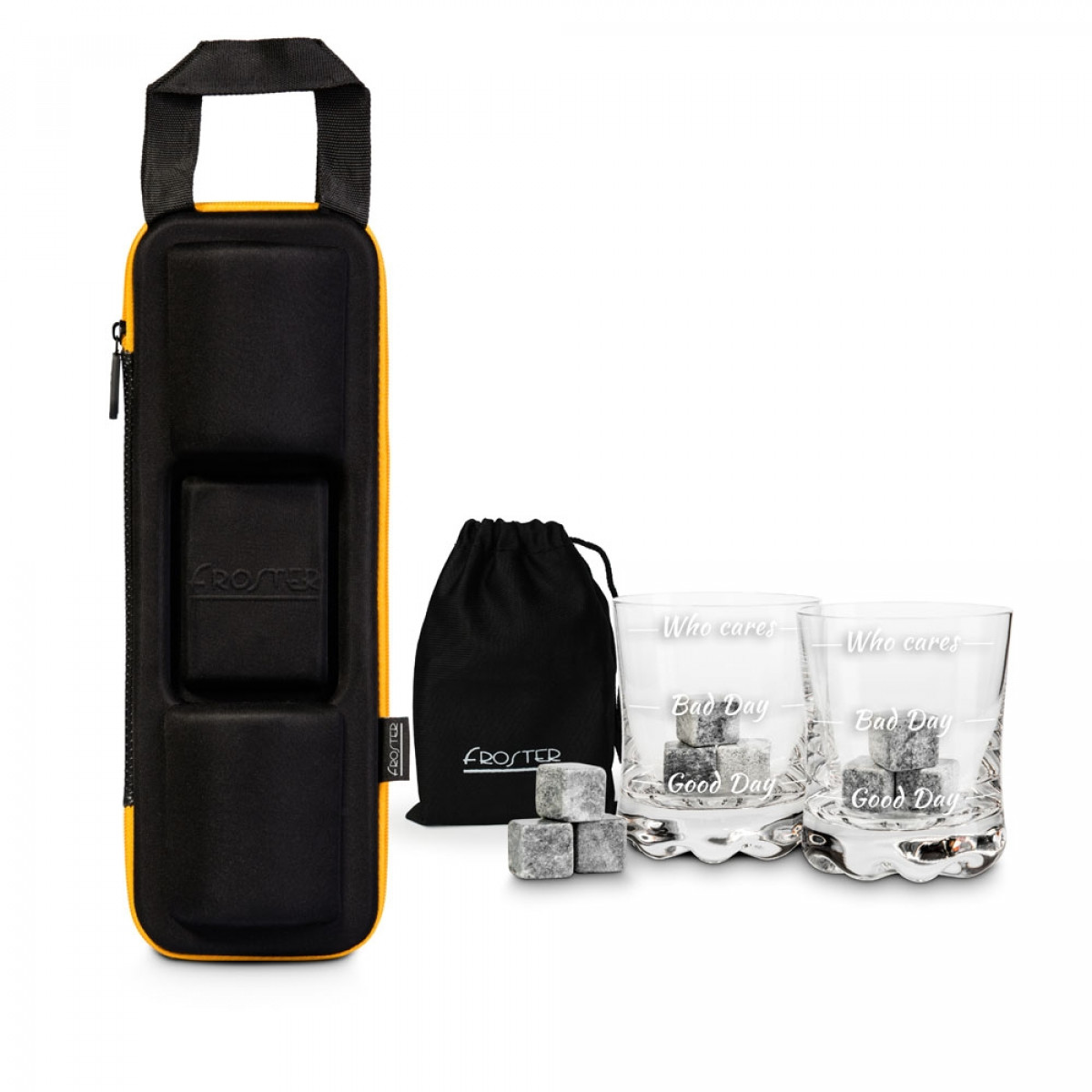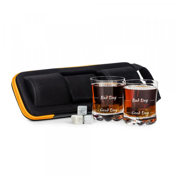 - Das Set enthält: 2 Whiskeygläser, 9 Steinwürfel, 1 elegante Tasche.