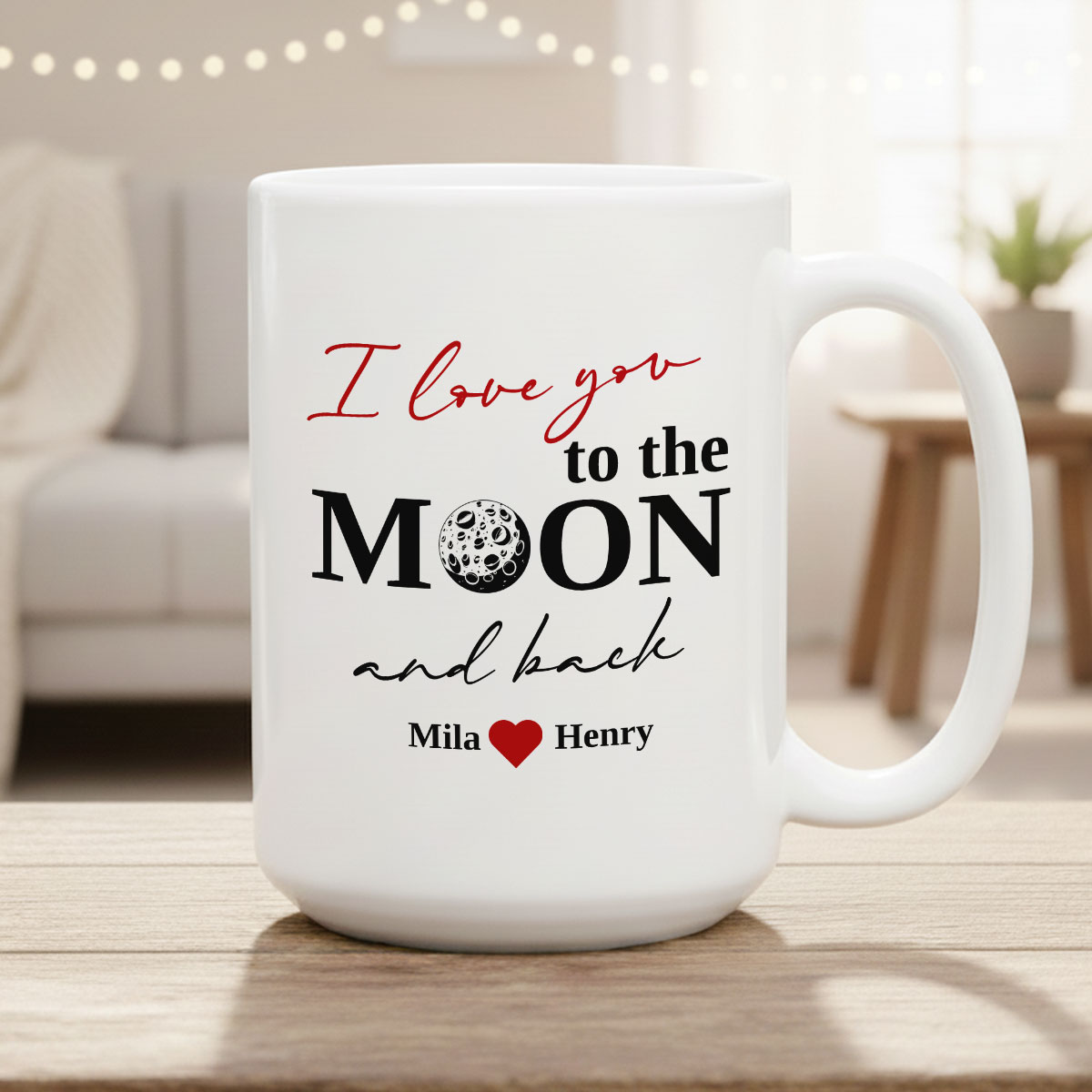 XL-Tasse mit exklusivem "To the moon and back"-Design mit Namen Ihrer Wahl.